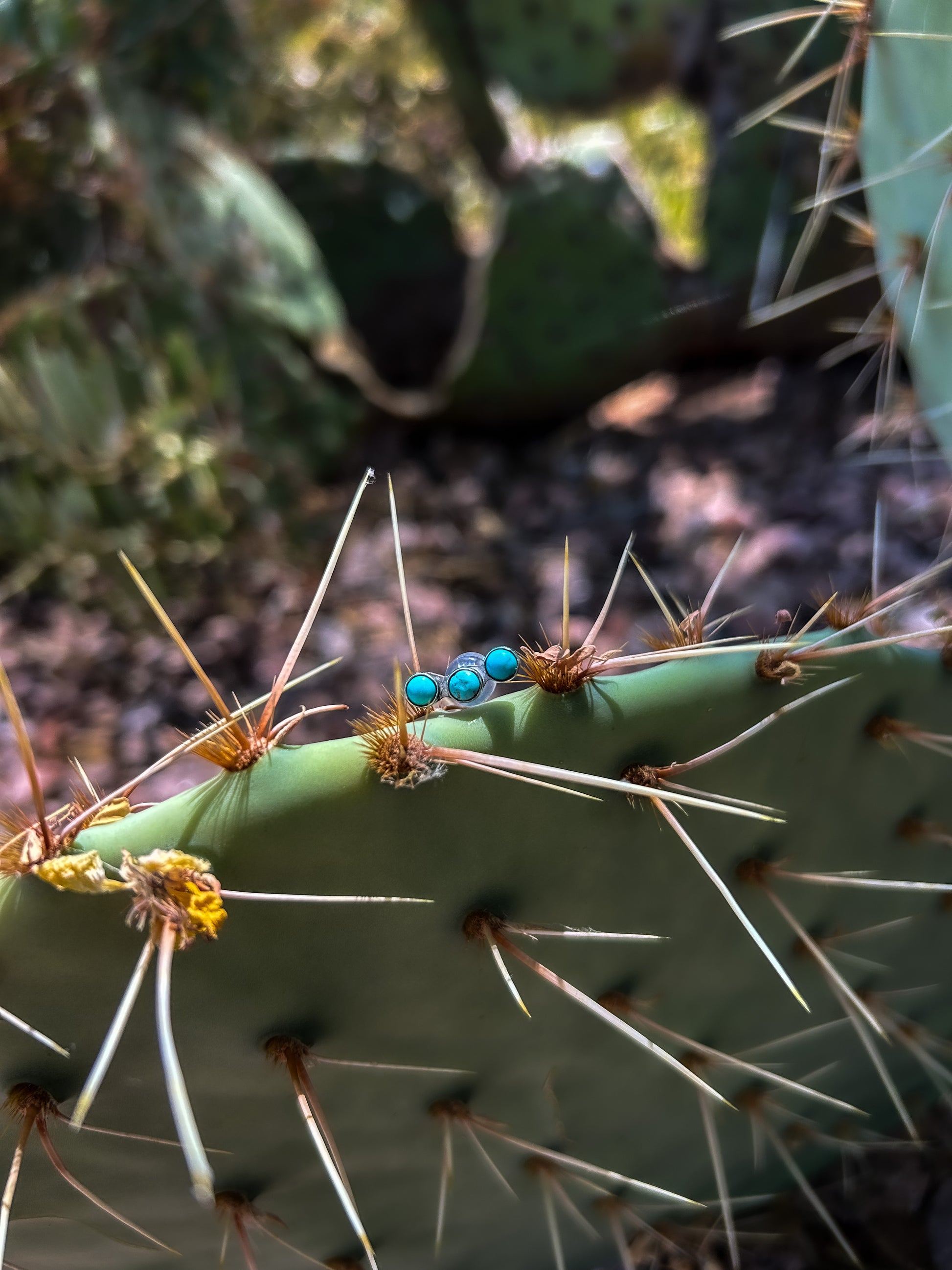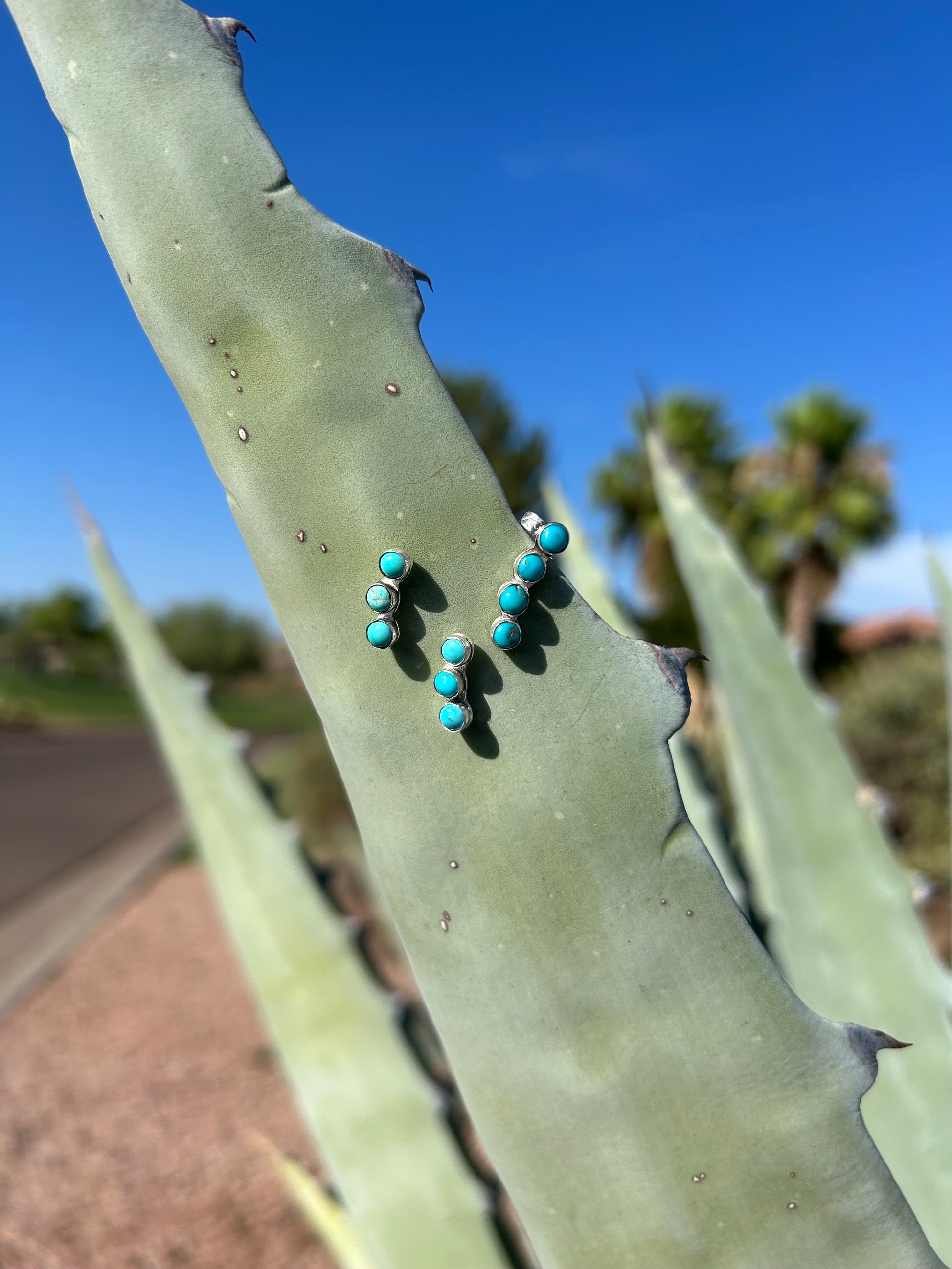 Single Sterling silver earring with 3 lone mountain turquoise stones.